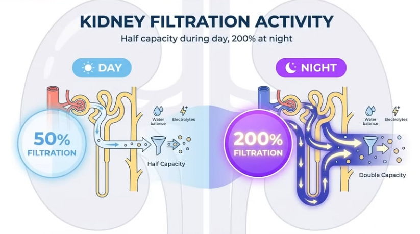 Nocturia, the medical term for repeatedly urinating at night, is not a normal part of aging at 40, 50, or even 70; a healthy body produces antidiuretic hormone (vasopressin) at night, acting like a factory manager instructing the kidneys to concentrate urine, reduce volume, and operate in economy mode, allowing uninterrupted sleep for seven or eight hours. When this mechanism fails, it’s a serious issue: one nighttime trip is a warning, but two or more triggers spikes in pulse and blood pressure, interrupting deep sleep where the brain clears waste, repairs neurons, and the heart rests truly, leading over years to hypertension, depression, accelerated brain aging, and cardiovascular stress worse than smoking, backed by clinical studies. Patients often self-diagnose—men blame their prostate, women menopause or infections—and chase symptoms with teas, antibiotics, supplements, or severe fluid restriction, going to bed parched yet still waking at 3 a.m., because they’re treating the symptom like taping over a fire alarm instead of extinguishing the fire. The bladder is merely the sensor signaling a deeper issue elsewhere; in 80% of cases, it’s healthy, faithfully emptying what’s delivered to it, while the real culprits are the legs and heart filling it overnight.